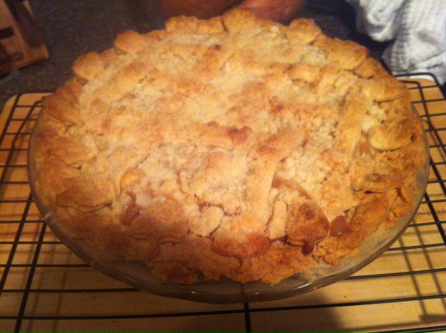 I cook. I cook well. I cook healthy well and I cook unhealthy well. However, unfortunately, I have learned that I also bake well. This Thanksgiving I made all sorts of goodies and what kind of person doesn’t at least try their goodies to know if they should make them again or not? I started with a chocolate satin raspberry cake that took forever to make since I hand shaved all of the curls, made the batter from scratch, tempered the chocolate, made raspberry preserves from scratch, and every other tedious baking task possible, but it was out of this world. Followed by a bourbon pumpkin cheesecake with a bourbon sour cream layer. Oh dear god – talk about rich and delicious and just – damn. Foodgasm. Not to mention, I effing LOVE bourbon. And last, but certainly not least, I made my dear dear husband his favorite in the world: homemade, from scratch crunch top apple pie with the flakiest homemade crust of life. I will say that my pie didn’t brown up as much as I wanted, but oh well.
