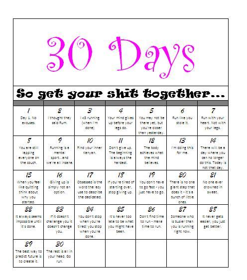 I also made this chart of 30 days of motivational crap because I get off on lists and checking things off. Feel free to DL and use if you’d like!