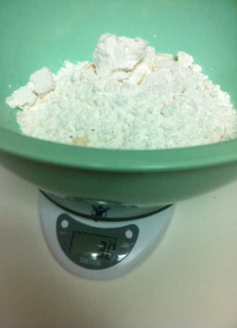 Throw that oatmeal into big bowl and put it on your Kitchen Scale & measure out your two flours into the bowl & then add your brown sugar, cinnamon, salt, baking power and baking soda. It’s easy as 1-2-3.