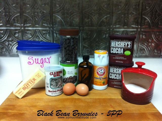 WTF? Black Bean Brownies? I’ve heard of them. I was a skeptic. I thought to myself, “There are two places for black beans – 1. in soup with queso and 2. in a quesadilla.” But lately I’ve been craving sweets like nobodies business so I thought I’d give it a shot. I make bomb brownies. Like, melt in your mouth, fudgey, slutty, nasty good brownies. So, I thought last night, as I was about to open a pint of Ben & Jerry’s while standing in front of the pantry staring at a can of black beans perhaps now was a good time to try this Black Bean “Brownie” thing. I knew there were two possible outcomes: 1. They’d be delicious and I’d get that sweet fix. (since I knew this _was_ an option I decided to do pictures the whole way in case some miracle occurred.) 2. They’d be disgusting and I’d lose all desire for something sweet. I was banking on #2. Because I was banking on #2 I decided to be lazy as lazy could be and take some shortcuts. My big shortcut? I skipped my Beloved KitchenAid Mixer, and I made the whole damn thing in a Food Processor, with one Pyrex Glass Bowl
