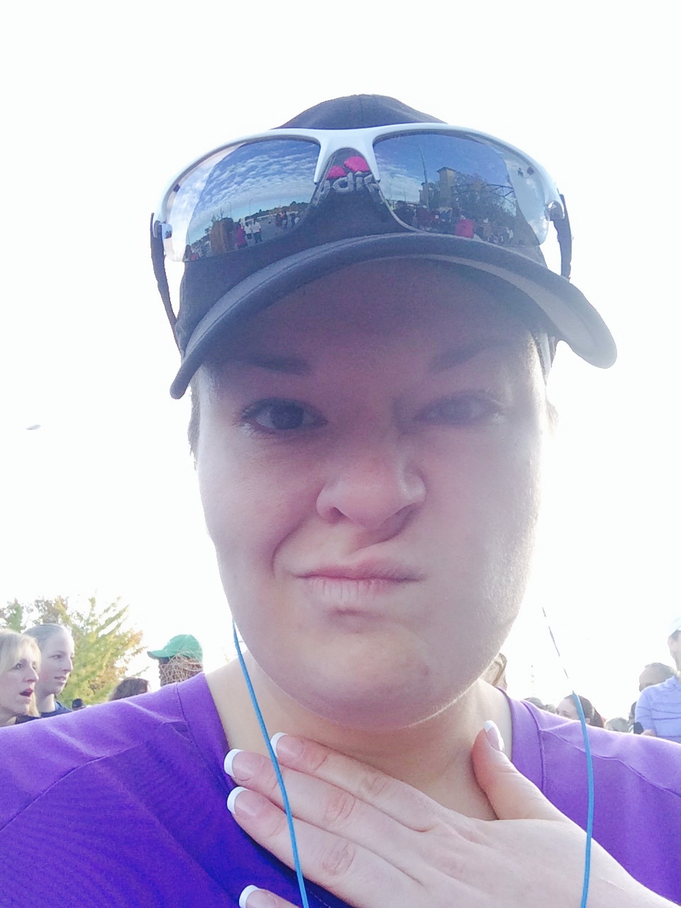 Kevin and Powers (a best friend of ours) convinced me to come to the Strong Legs Run race just dressed to run and make my decision there. Ultimately, they did the 10k and I ran the 5k. I physically couldn’t do the 10k. I was still in ouchy pain from surgery, but knew the mental benefits would far outweigh the physical pain. I took a couple of selfies before hand. I looked at that picture and realized how sad and empty I looked. I looked as broken as I felt. Kevin has had to see the sadness in my eyes for two weeks – it made my conviction to a healthier Monday stronger.