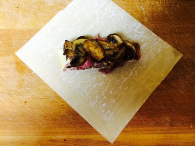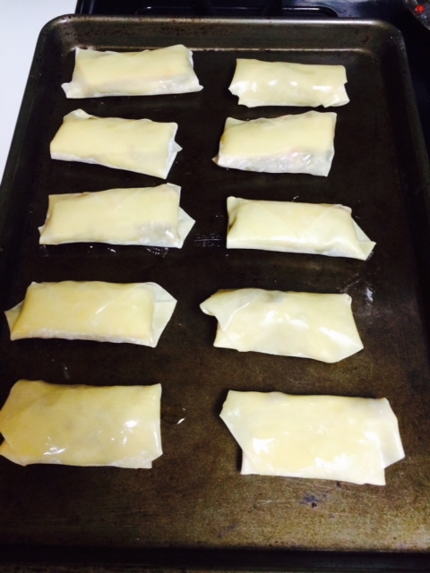 7. Roll, brush with EVOO and bake for 12 minutes.