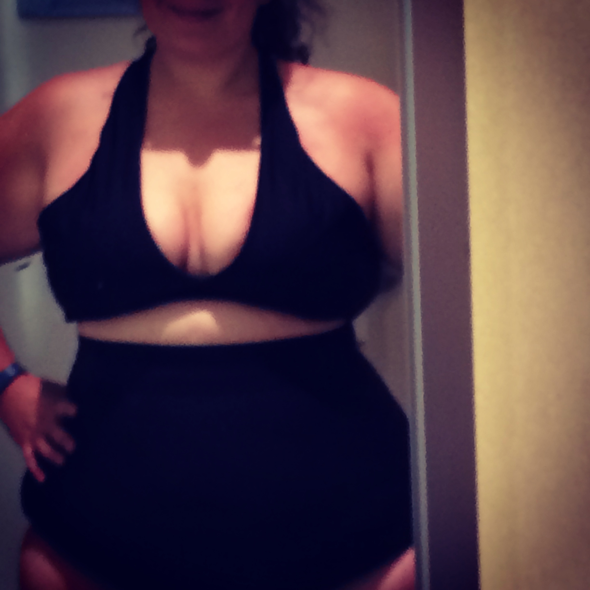 So, after standing in the fitting room for a solid 30 minutes, dressed in my new fatkini, the sales associate knocking and asking me if I need help, the fear in my throat – I opened the door and her response was, “I love it.”