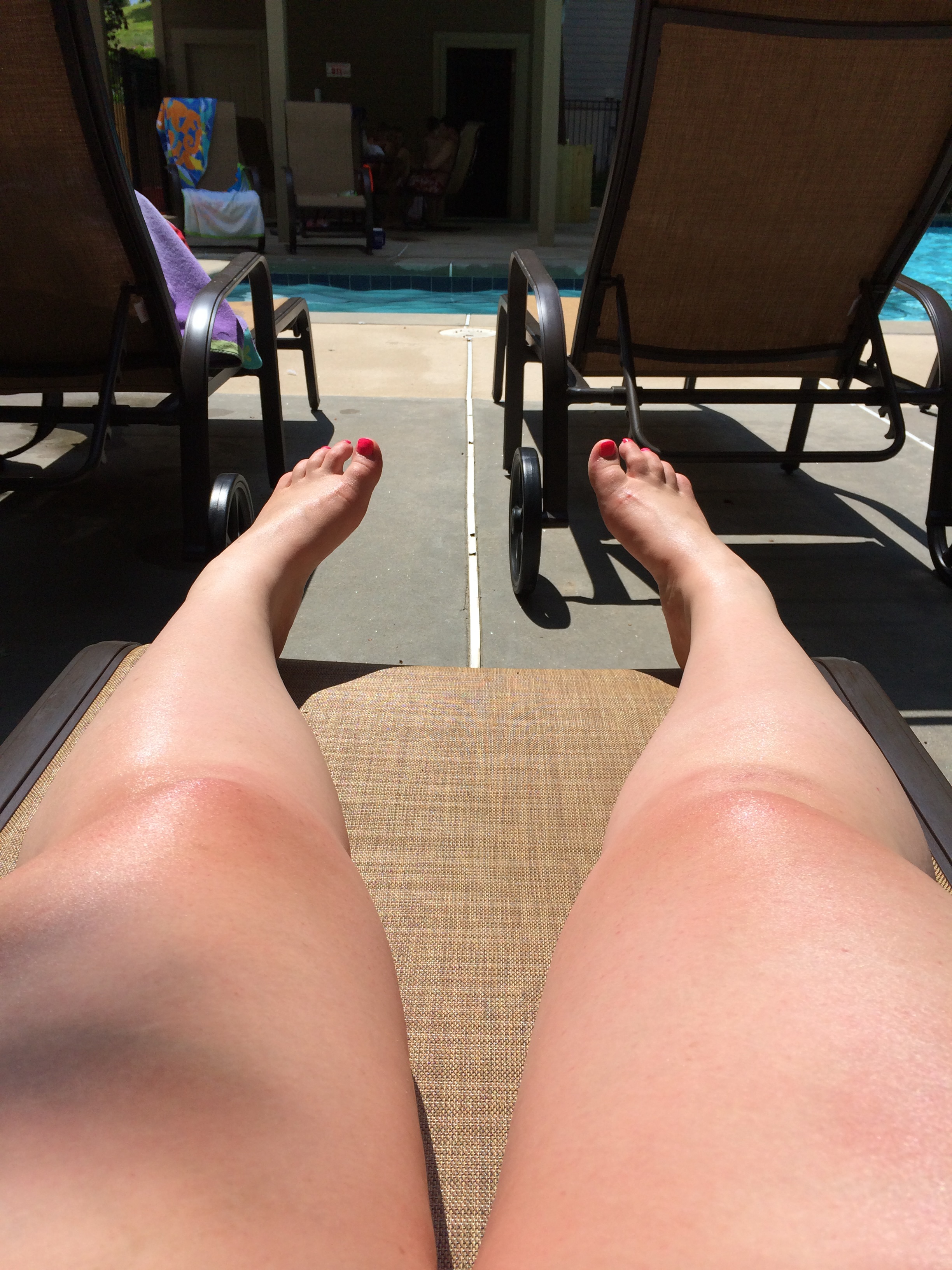 And the truth of the matter was, I did too. It’s not a ton of skin, but it’s still out of my comfort zone. I can wear the top two different ways and I bought another bottom that comes down lower, but I’m currently content and (now) comfortable with this one. I have the option to show more if I want. I laid by the pool on Saturday and flaunted my new purchase with nothing but rave reviews.
