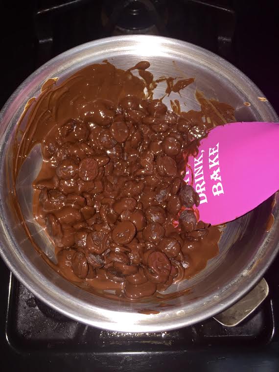 7. While this starts to set up melt your dark chocolate in a double boiler.