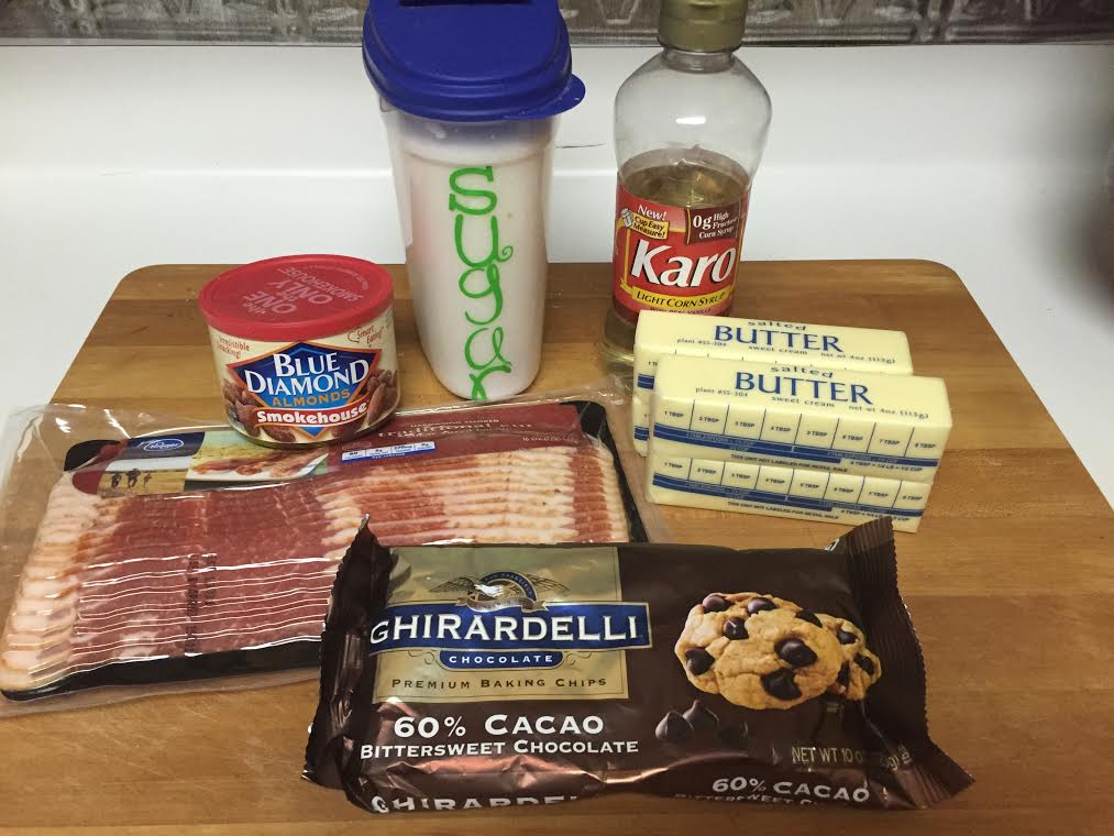 I partnered with Blue Diamond Almonds and spent two weeks racking my brain figuring out what route I wanted to take with the Smokehouse almonds they sent me. Sweet or savory? Slutty or Healthy? I went full force and created a sweet, savory, slutty, but still point friendly dessert. I’ve worked with bacon in cupcakes before and those were fantastic, but I’m not a cupcake girl really. My weakness? I can’t say no to toffee. And since I’m actually tracking my points, I did the calculations on this so I could indulge without too much guilt! 4pp/ounce. I regret nothing. Alright, here we go!!!