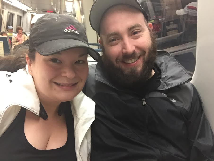 We took public transit into the city to avoid all the cars and chaos. *Please note, we are currently smiling here. This won’t last long.